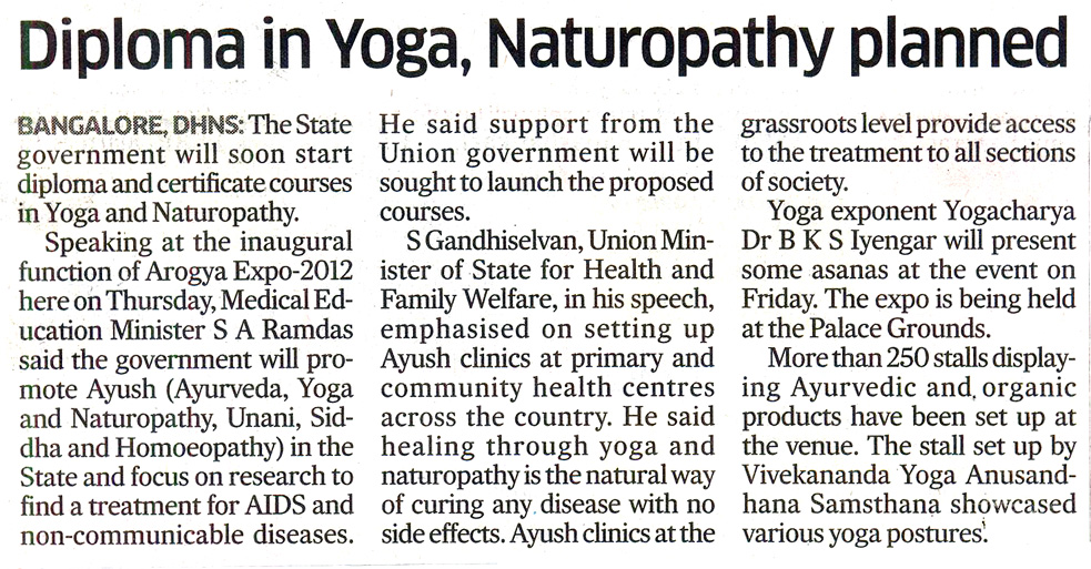 Diploma in Yoga, Naturopathy Planned