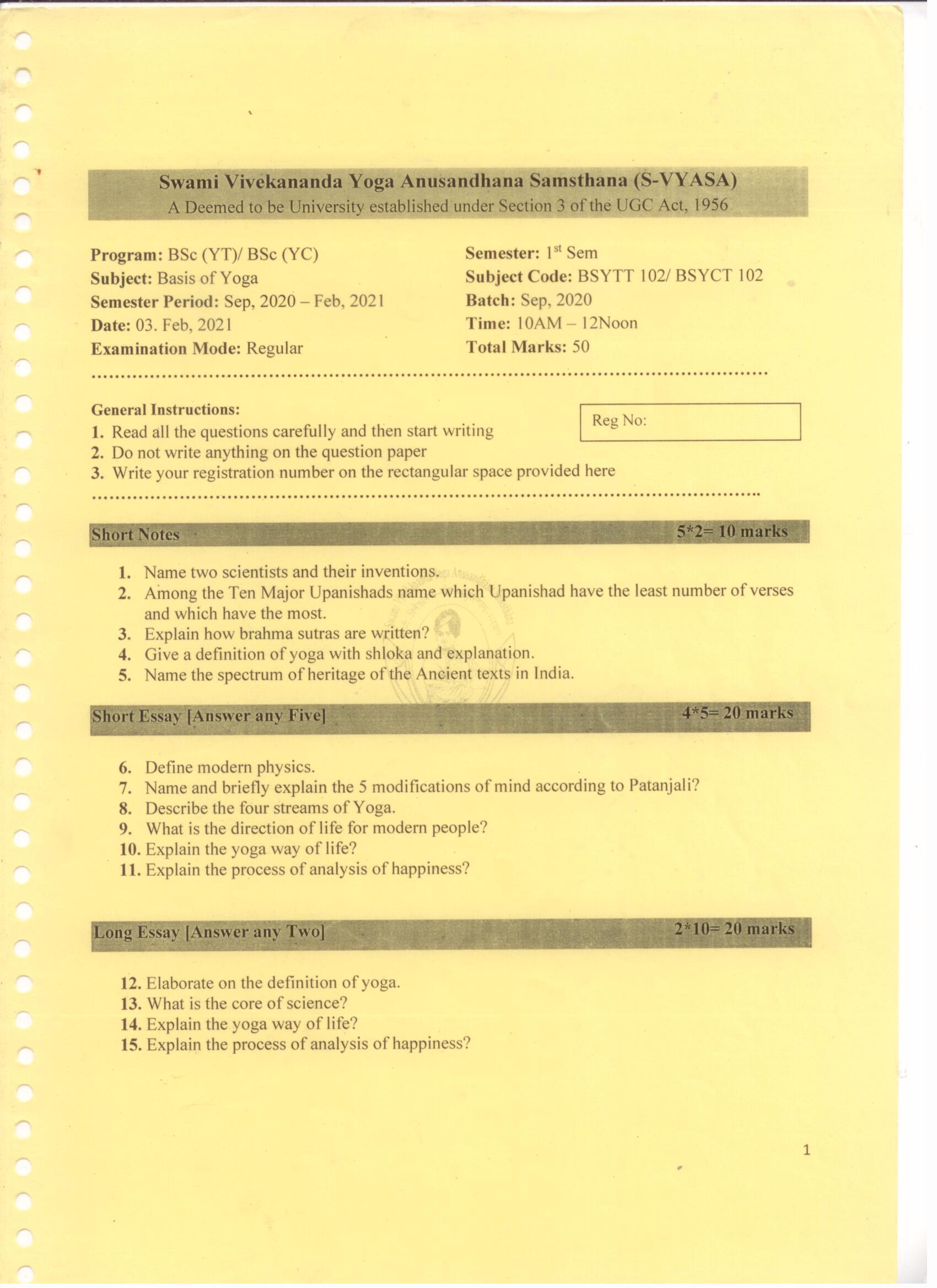 Question Papers @S-VYASA