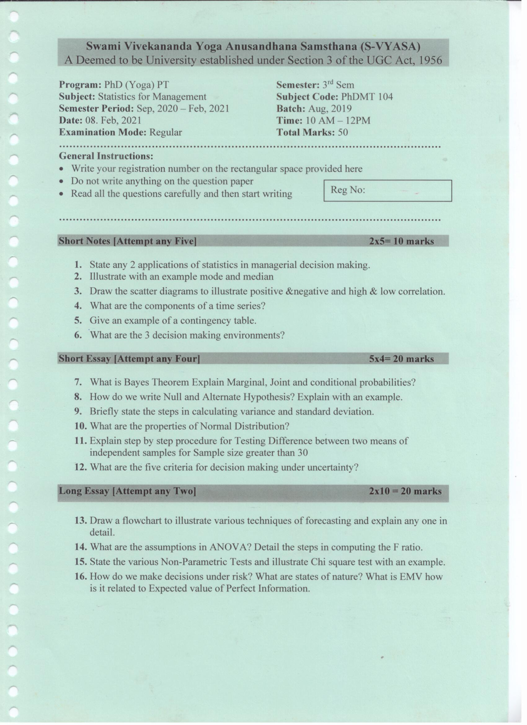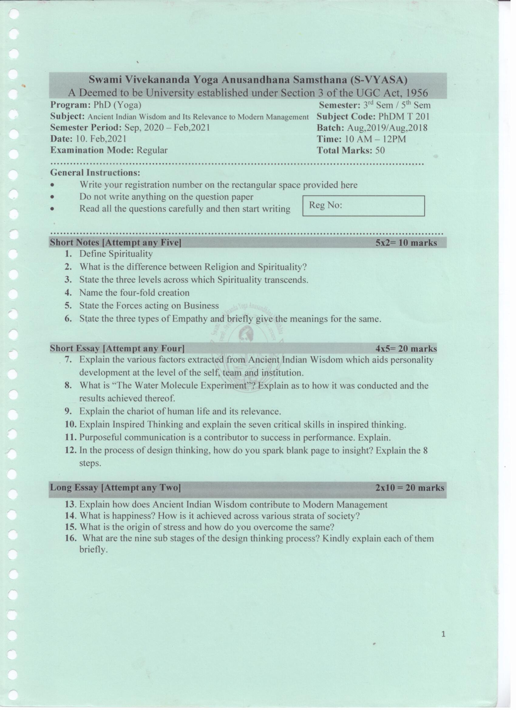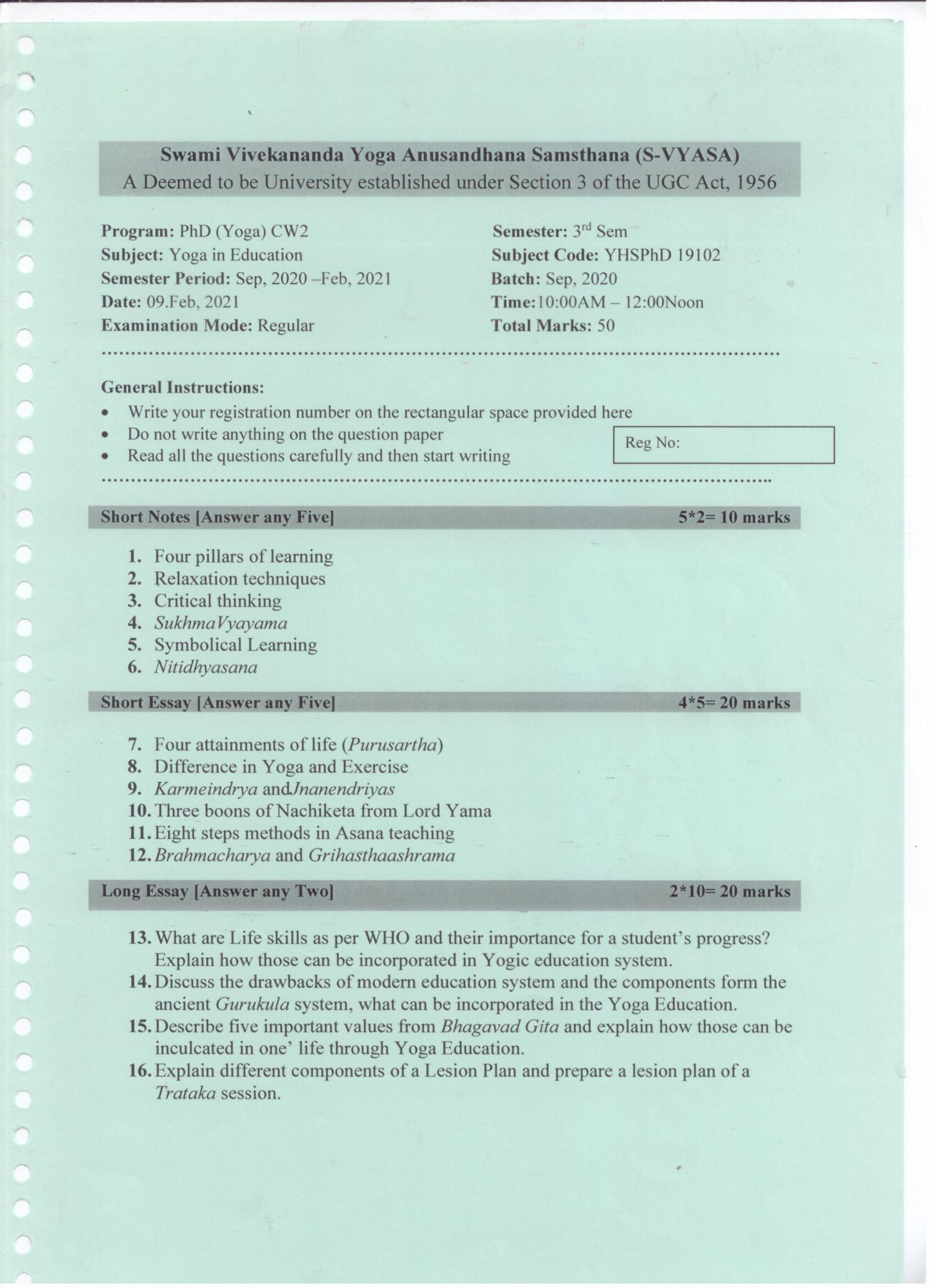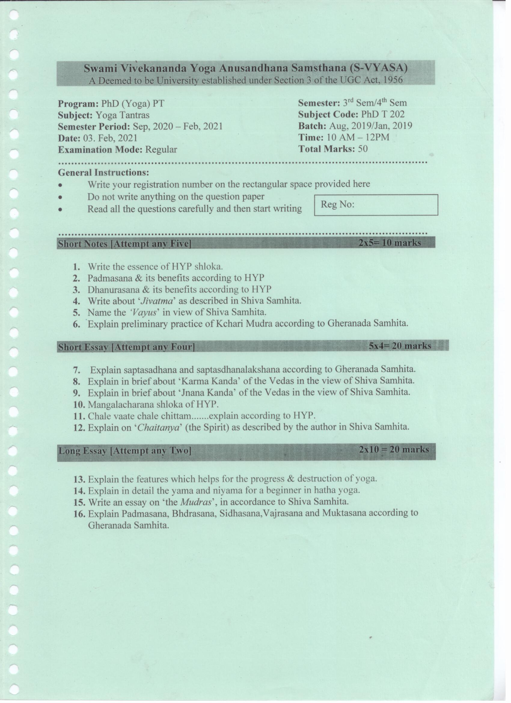Question Papers @S-VYASA